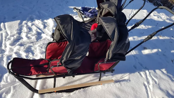 Riksza wyposażona w płozy zamiast kół (tzw. zestaw narciarski), idealnie sprawdzi się na skiturach lub biegówkach. Dzięki niej rodzice mogą cieszyć się zimowymi aktywnościami, podążając z dziećmi po ciekawych trasach. Wypożyczenie możliwe tylko przy odpowiednich warunkach śniegowych.
